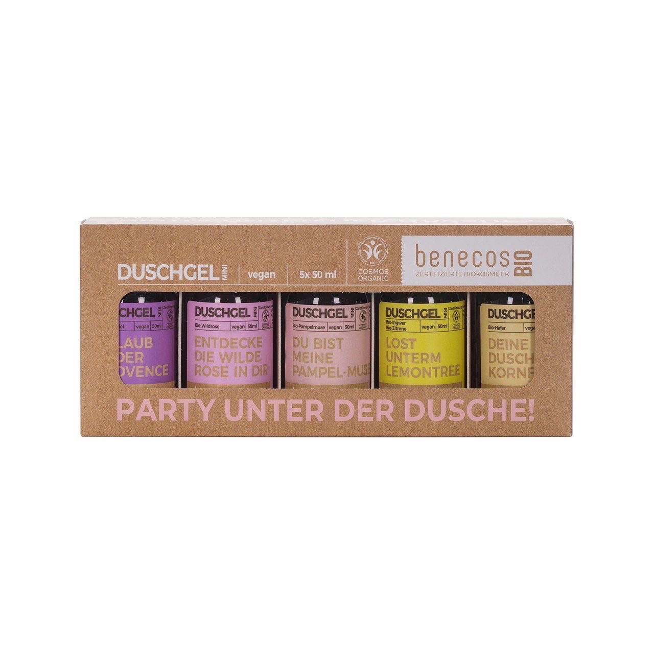 Feier dich und dein Leben im Badezimmer, mit fünf ausgewählten benecosBIO Mini-Duschgelen. Tauche gedanklich zu den Lavendelfeldern in der Provence ab, entdecke die wilde Rose in dir, gönn dir eine Dusche im Kornfeld, erhalte eine Liebeserklärung auf die Pampel-Muse-Art und lass dich lost unterm Lemontree treiben. Erlebe deine exklusive Dusch-Party im Bad! Dermatologisch getestet, mit heimischem BIO-Apfelsaft und pflanzlichen Tensiden.