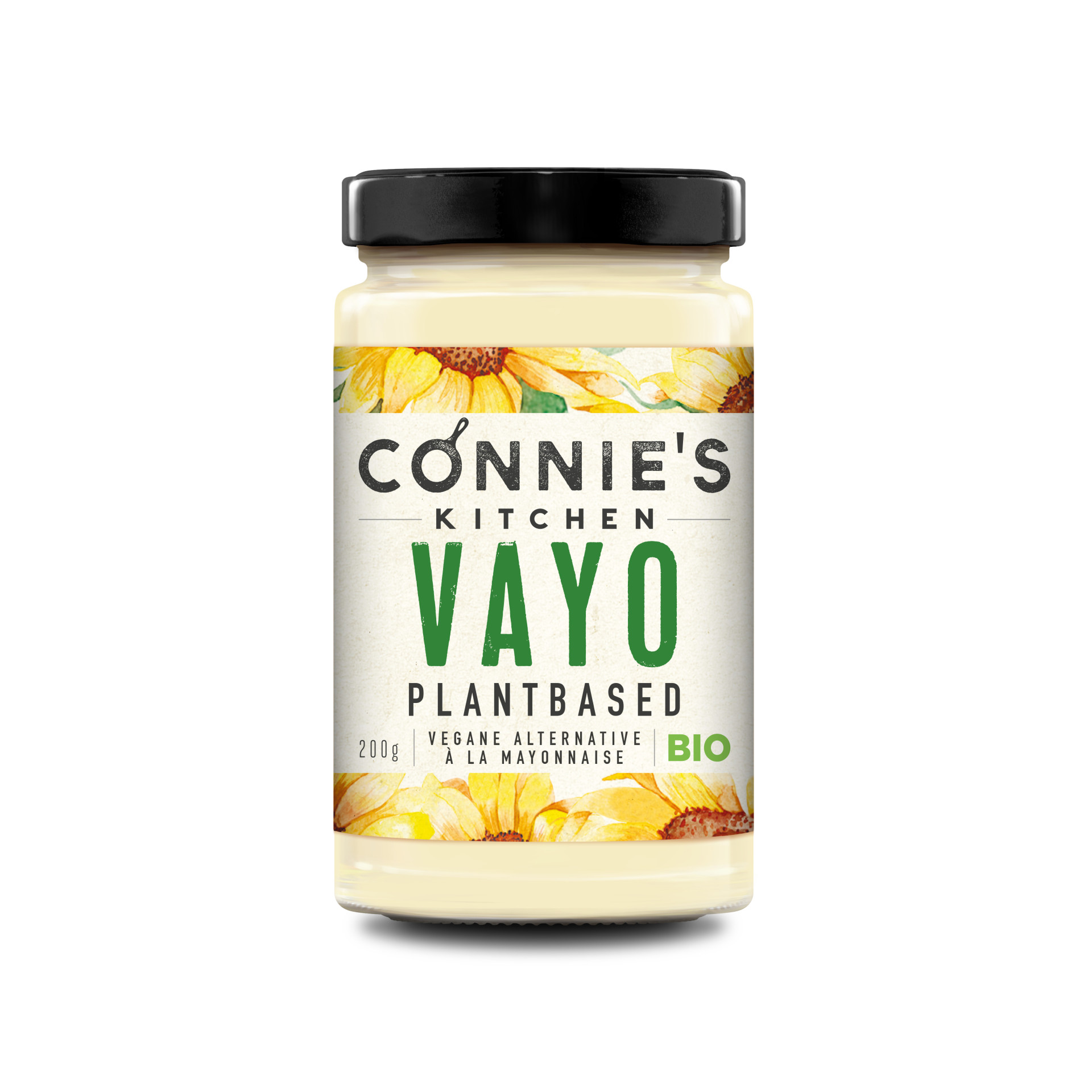 Connie versucht Familienmahlzeiten ohne grossen Aufwand noch gesünder zu machen. Deshalb hat sie Connie’s Kitchen VAYO kreiert – eine cremige Bio-Mayonnaise auf Pflanzenbasis, voller Geschmack. Mit ölsäure-reichem Sonnenblumenöl (besser für Dich) und Leinsamenmehl als natürlicher Ei-Ersatz (besser für die Welt). Eine leckere vegane Mayo vollgepackt mit wertvollen Zutaten.